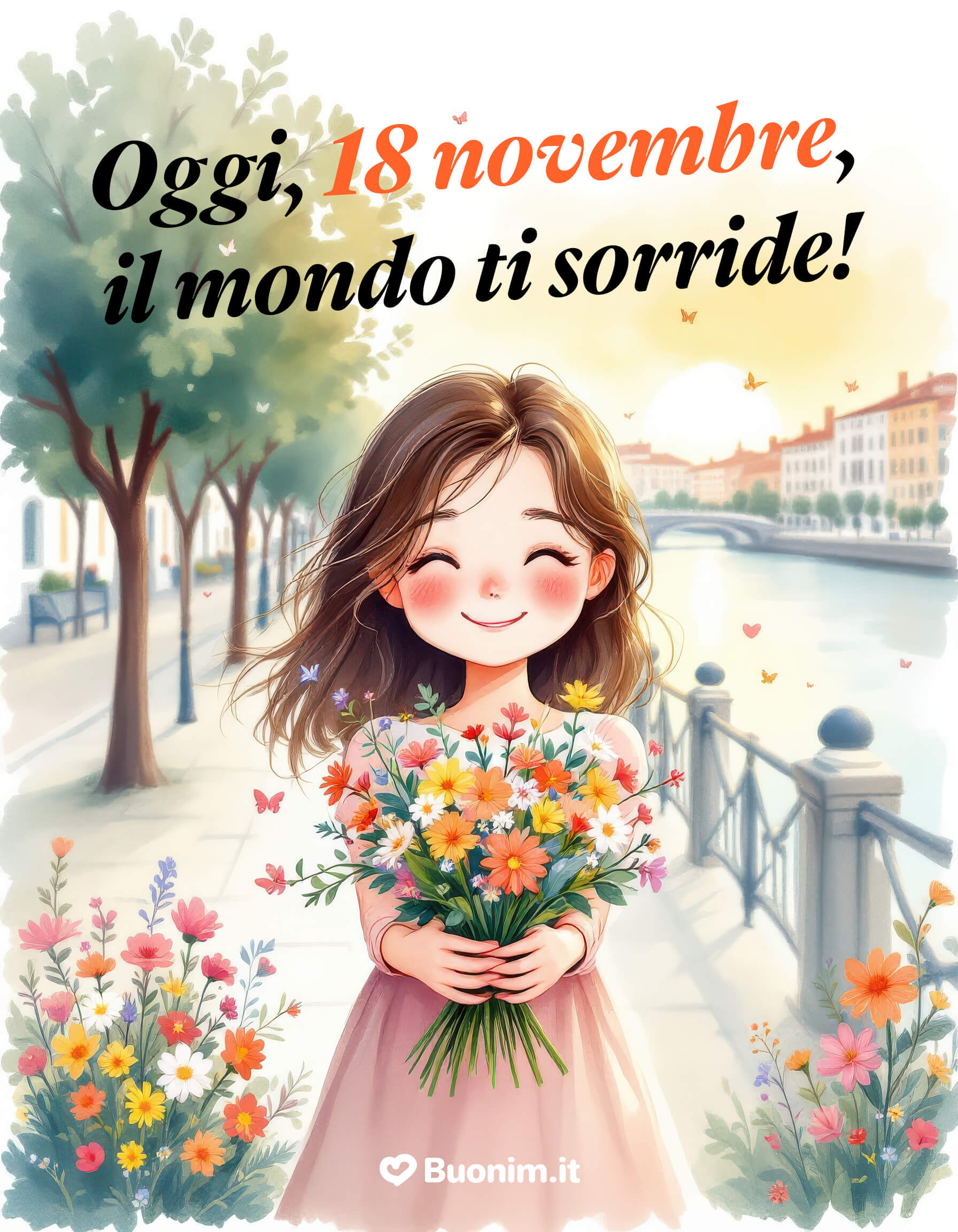 Oggi, 18 novembre, l’aria profuma di pioggia e di autunno pieno. Le foglie color rame si posano silenziose sui marciapiedi e il cielo sembra invitare alla calma. È un giorno che parla di piccoli gesti e di pensieri tranquilli, di caffè caldi e di sguardi sinceri. Ti auguro una giornata serena, con il cuore leggero e la mente aperta a tutto ciò che di bello può arrivare.