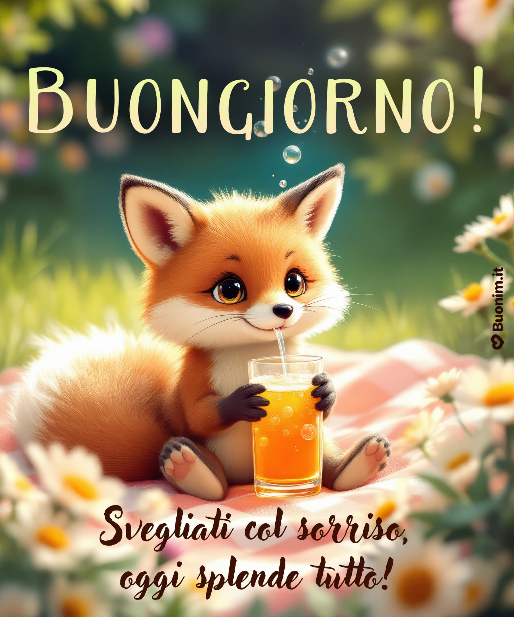 Dolcissimo buongiorno con la volpina del sorrisoScaricaRisvegliati tra fiori, sole e dolcezza e lascia che questa scena tenera porti serenità e positività nel tuo cuore