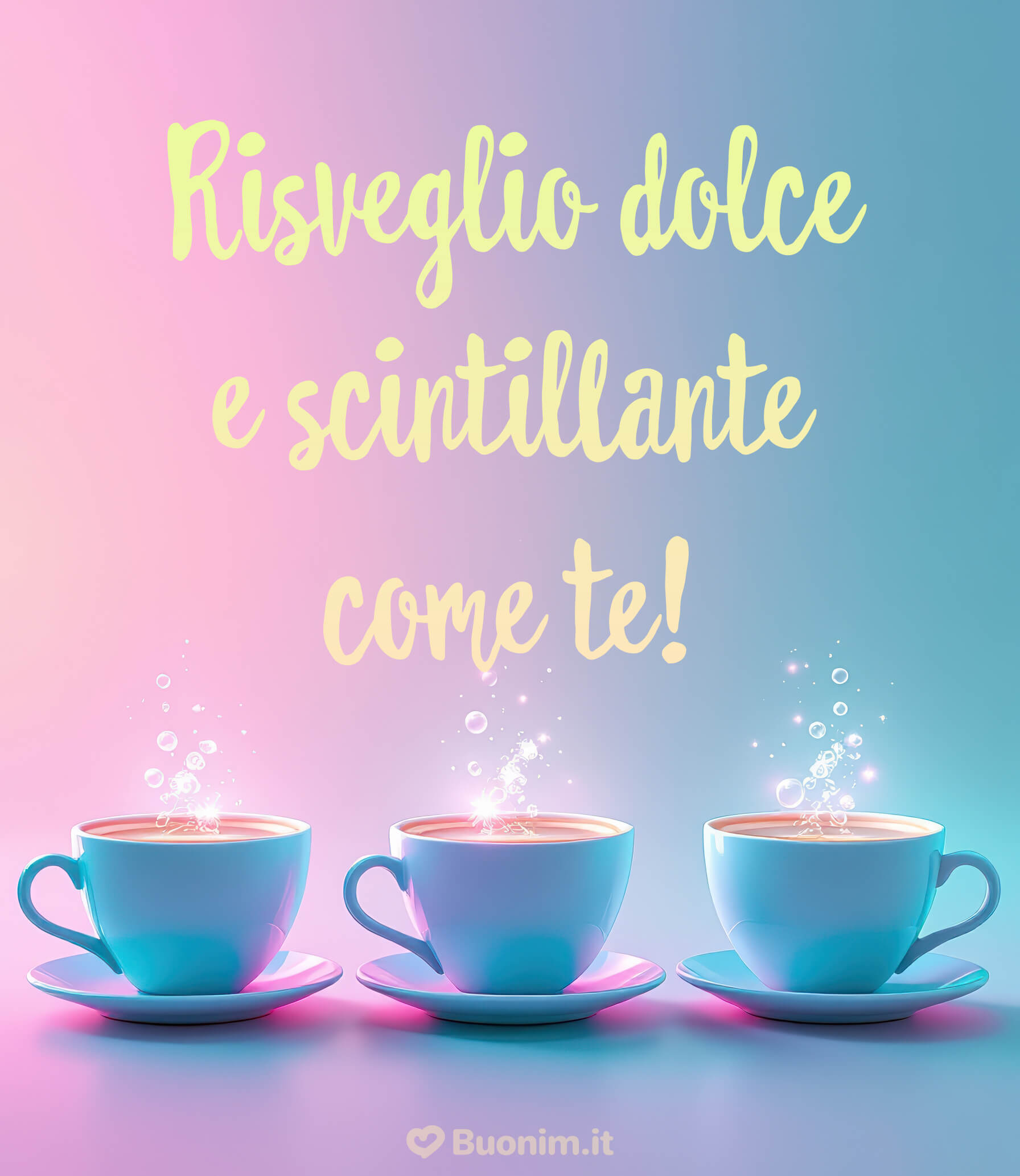 Buongiorno frizzante per un risveglio dolce come teScaricaTre tazzine scintillanti che portano allegria e un pizzico di magia per iniziare la giornata con il sorriso