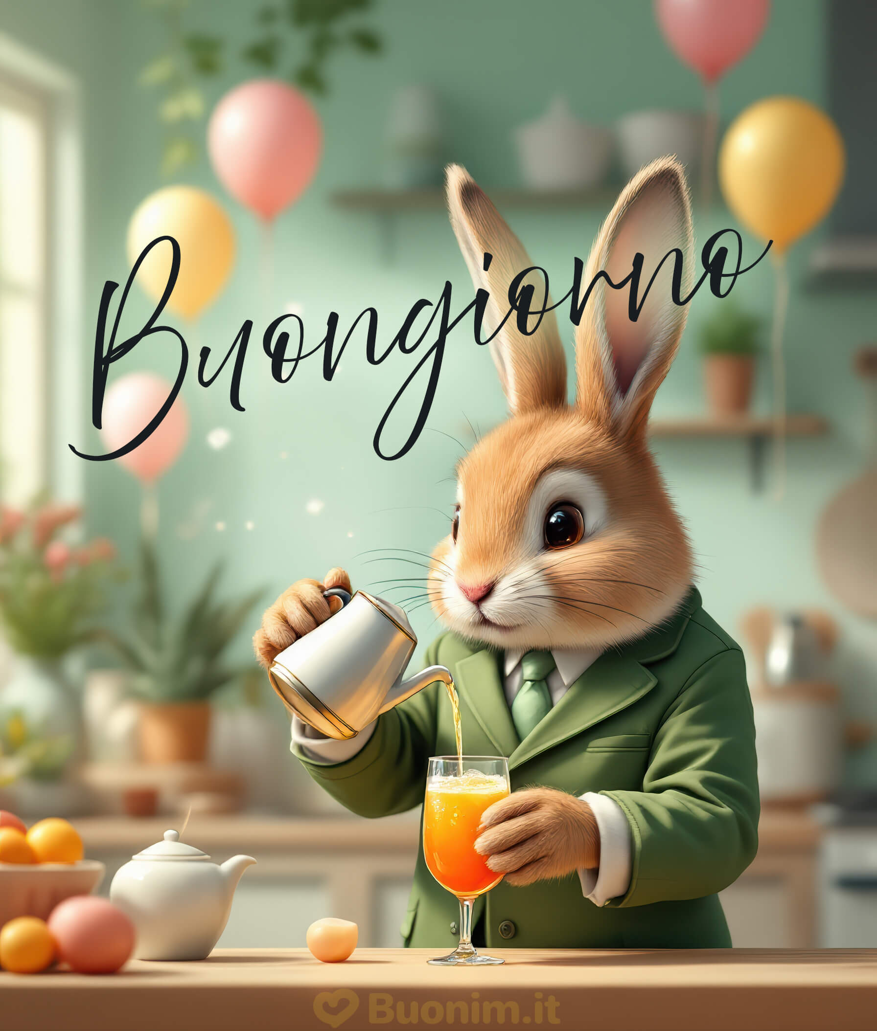 Buongiorno elegante e frizzante con il coniglietto gentileScaricaUn saluto mattutino pieno di tenerezza e leggerezza per iniziare la giornata con serenità e dolce energia