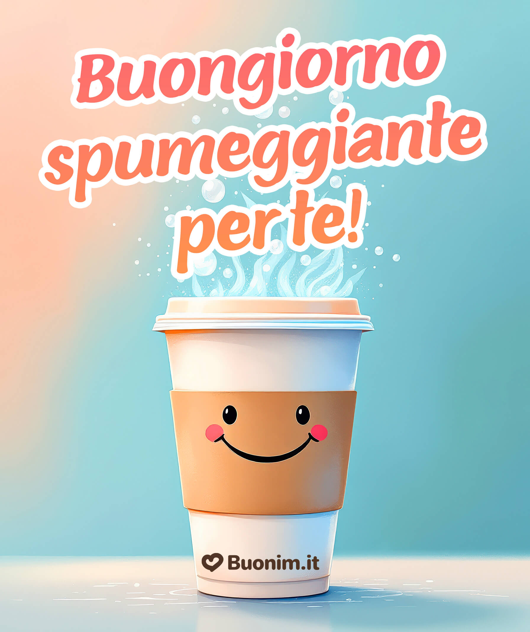 Buongiorno spumeggiante per teScaricaUna tazza allegra e piena di energia che trasmette positività e voglia di affrontare la giornata con leggerezza e gioia