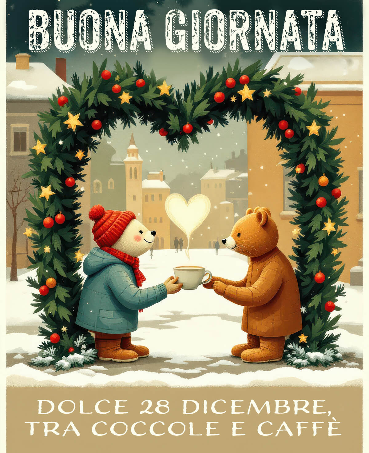 Tra Natale e Capodanno il 28 dicembre sembra un giorno un po’ nascosto, ma può essere una bella parentesi di calma. Ti auguro una mattina semplice, un caffè in pace e un pensiero leggero che ti faccia sorridere senza motivo. Che oggi tu possa respirare un po’ di più e pretendere un po’ meno da te stesso.