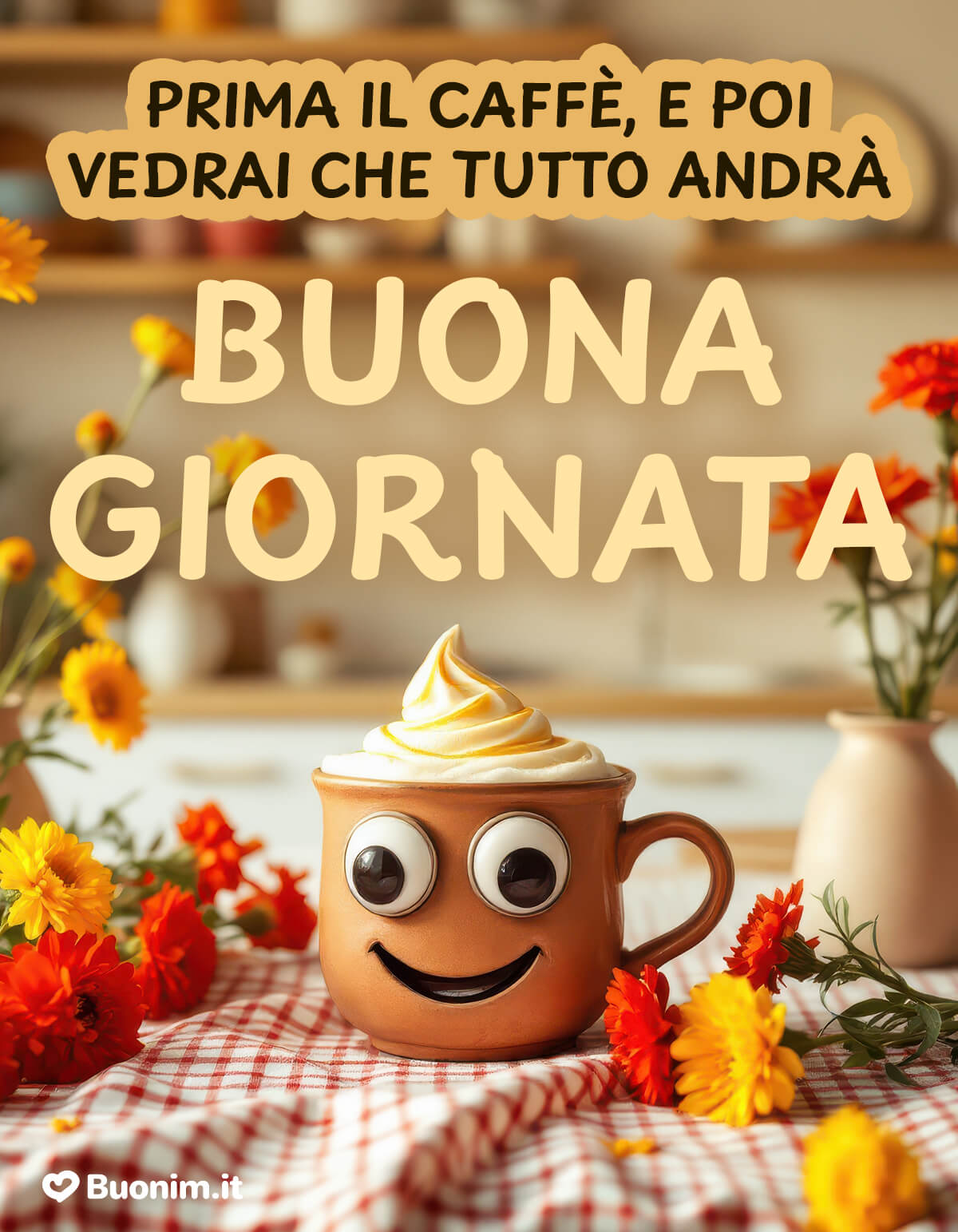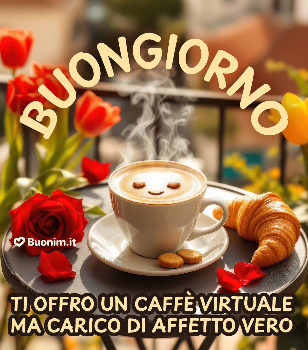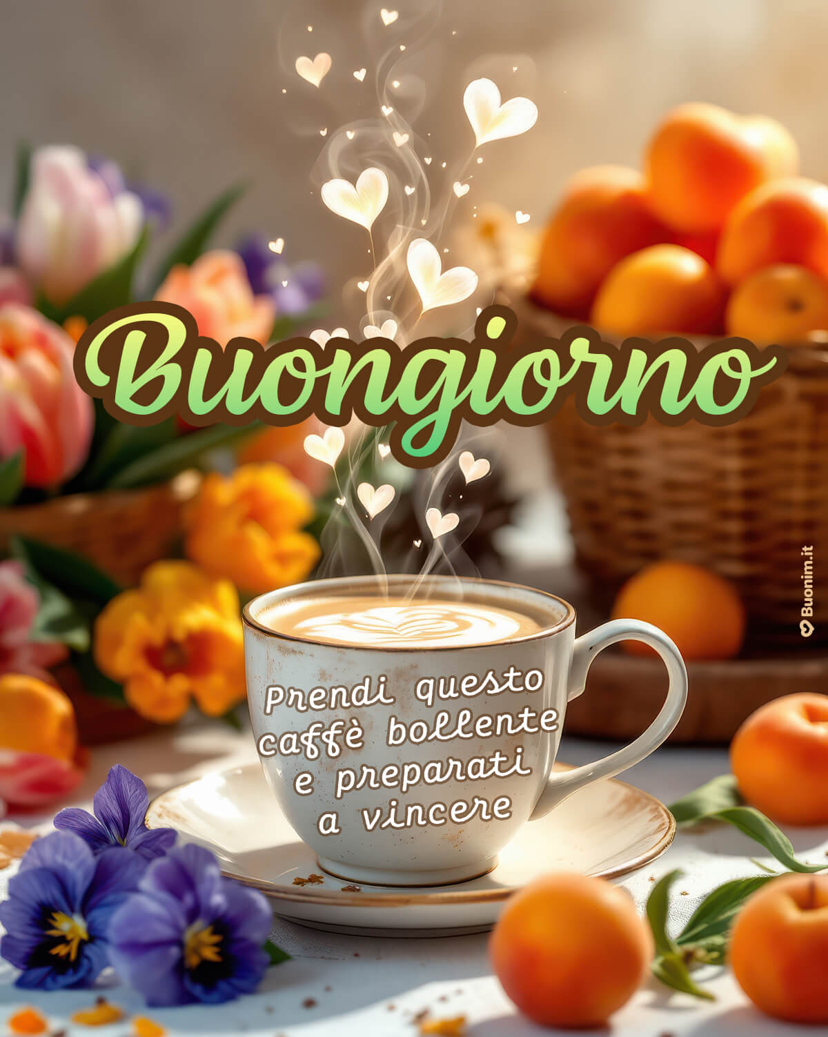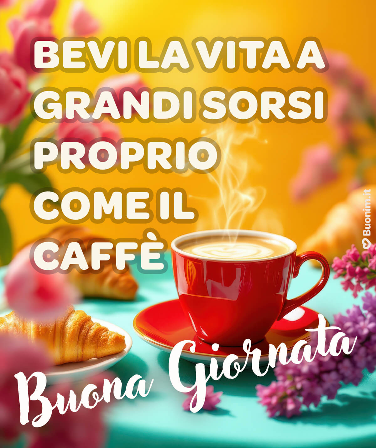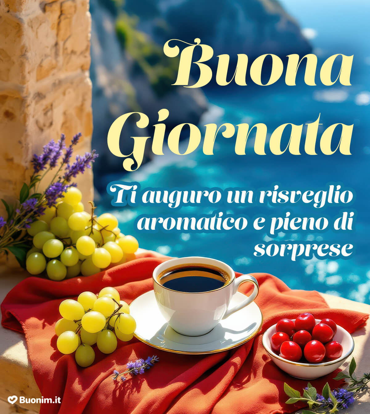 Ti auguro un buongiorno pieno di energia serena, un caffè che sappia di cose belle e un giorno che scorra leggero, con un sorriso che torna spesso.