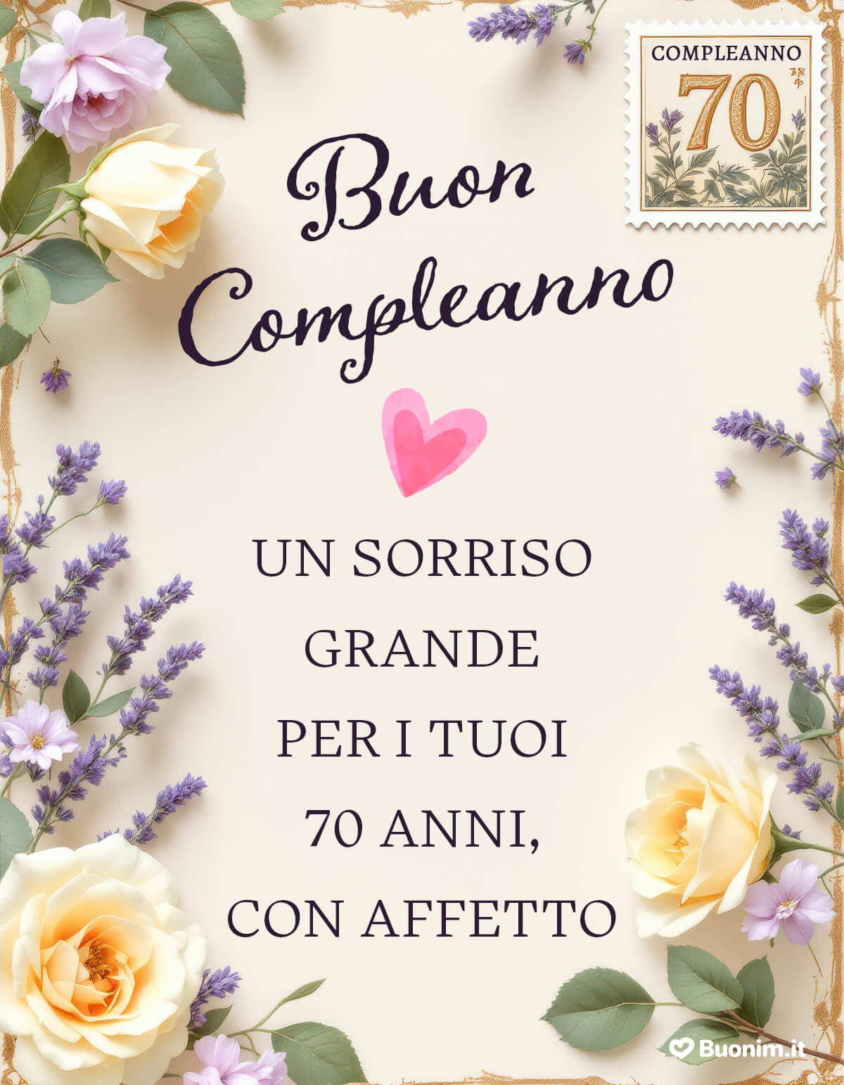 Settant’anni non sono solo un numero, sono un piccolo giubileo di vita, una data tonda che profuma di storia, coraggio e strada fatta. Che questo settantesimo compleanno sia un traguardo importante, un’età matura di tutto rispetto, in cui ti senti libero di guardare indietro con orgoglio e avanti con curiosità, perché il bello è avere abbastanza anni per raccontare e abbastanza energia per continuare a scegliere ciò che ti rende felice.