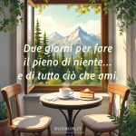 Può essere utile anche scegliere una o due cose semplici che ti piacerebbe davvero fare, per esempio una passeggiata, un pranzo tranquillo, un film sul divano, e lasciare il resto più leggero. Le immagini belle di felice weekend possono diventare solo un modo gentile per dire ti penso e spero che questi giorni siano un po’ più morbidi per te.