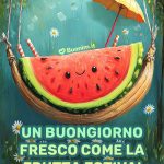Un buongiorno con la frutta estiva è come un piccolo regalo di freschezza. Fragole, pesche, meloni e colori accesi accendono l’umore e la fantasia. Ideale per chi cerca immagini nuovissime e bellissime per fare un augurio semplice ma ricco di energia positiva.