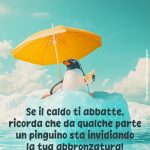 Quante volte durante una giornata particolarmente afosa abbiamo pensato che il caldo fosse davvero insopportabile? Le vignette e immagini divertenti sul caldo estivo rappresentano con ironia e leggerezza questa sensazione comune. Un gelato che si scioglie prima ancora di essere assaggiato, ventilatori che lavorano a pieno ritmo, e persone che cercano refrigerio in modi creativi sono solo alcuni dei soggetti di queste illustrazioni. Condividere una di queste spiritose immagini estive può strappare un sorriso a chi, come noi, sta affrontando le temperature elevate con filosofia e buonumore. La risata, si sa, è sempre un ottimo modo per sentire meno caldo!